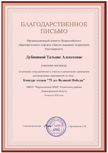 Профессиональный блог-портфолио Дубининой Татьяны Алексеевны